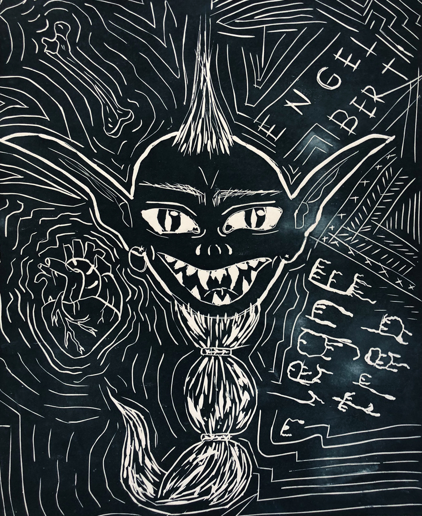 Hochdruck auf Linolplatte: rote und blaue Acrylfarbe