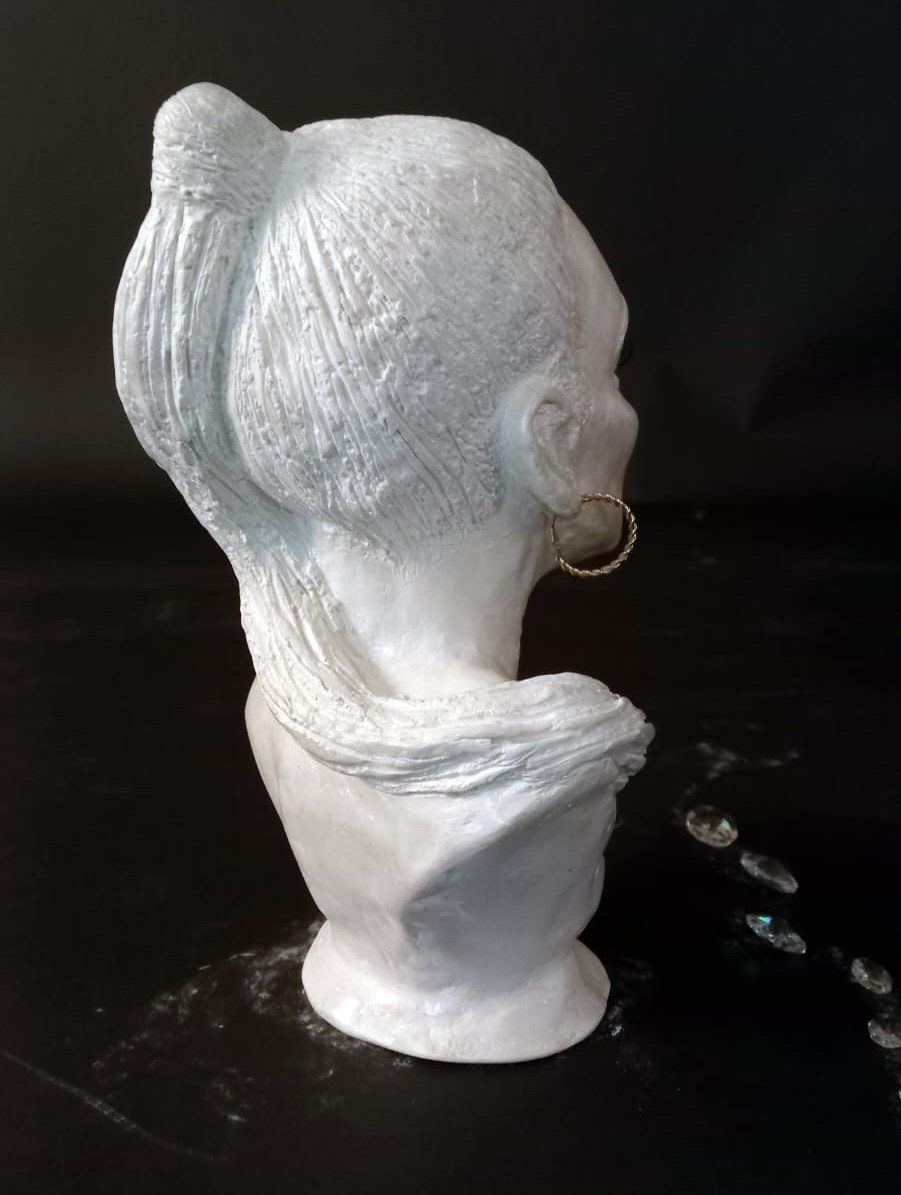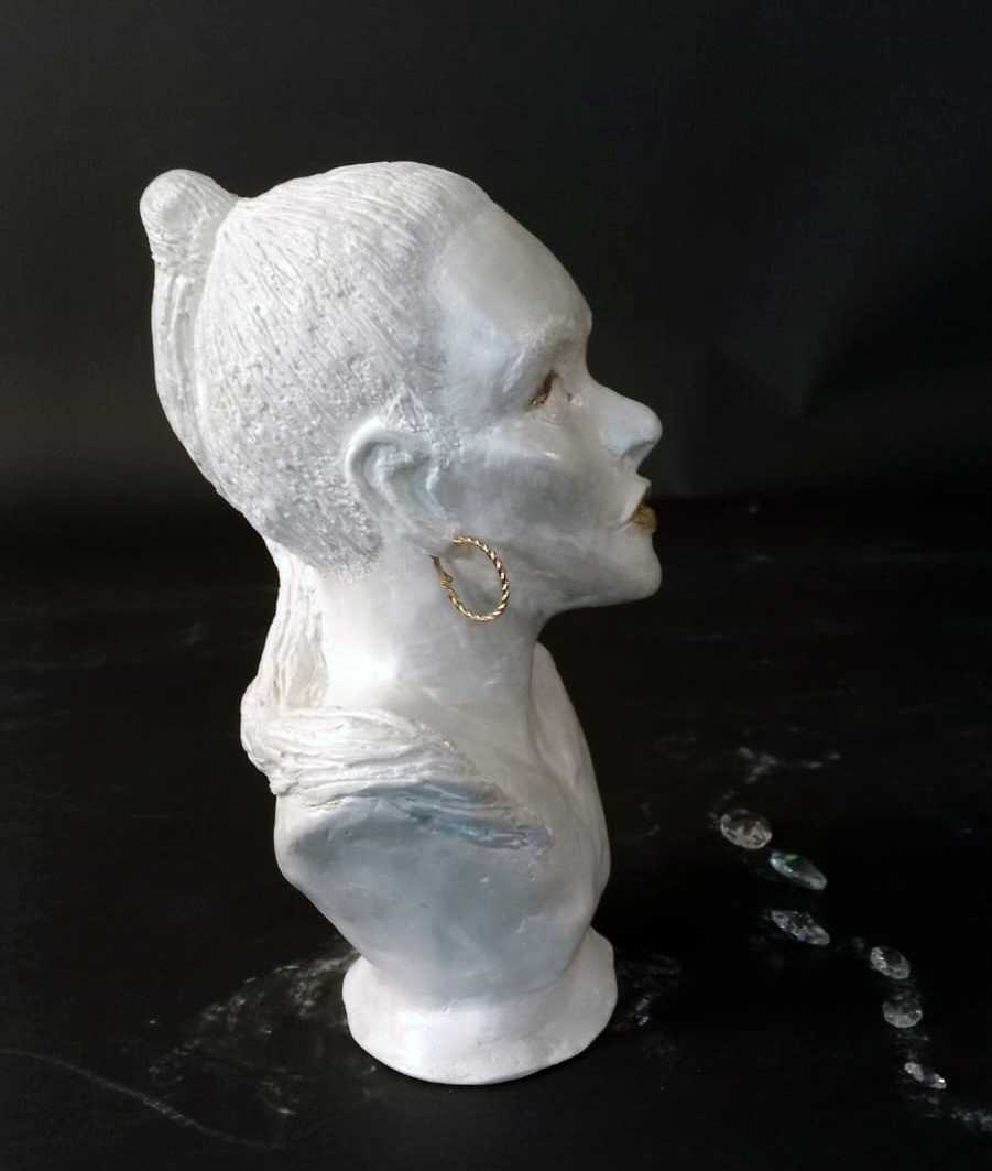 Plaster Queen-Zutaten: Gips, Schimmerpigment, goldene und weiße Acrylfarbe, Klarlackacrylfarbe, Modeschmuck, Glitzer-Steine